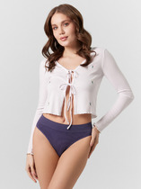 Трусы женские стринги с высокой посадкой из трикотажного полотна рибана с протяжками по бокам.