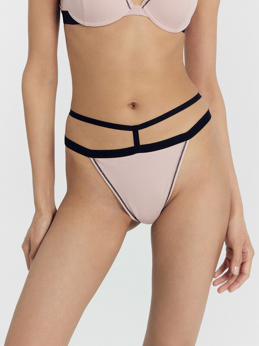Трусы женские стринги с высокой посадкой из трикотажного полотна рибана с протяжками по бокам.