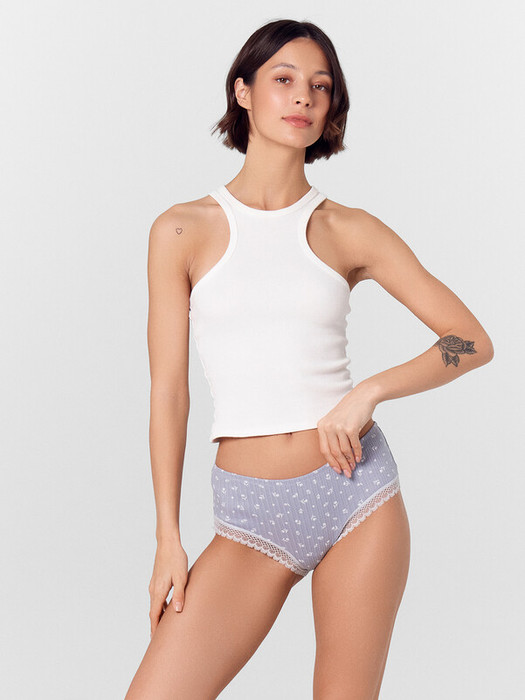 Трусы женские, силуэт шорты, из рибаны, со средней посадкой. Широкий бочок. Передняя  деталь цельная.  Подкладка ластовицы из кулирной глади отлетная по переднему срезу. Задняя деталь со средним швом. Подкладка ластовицы настрочена накладным швом с верхним застилом.