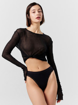 Передняя часть украшена кружевными вставками с вертикальным и горизонтальным членением, что добавляет образу изысканности. Задняя деталь со средним швом и декоративными линиями подчеркивает плавность изгибов. Все срезы обработаны мягкой эластичной тесьмой, которая предотвращает натирание и обеспечивает идеальную посадку. Ластовица на подкладке из основного материала гарантирует гигиеничность и дополнительный комфорт.