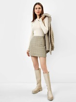 Юбка А-силуэта, длиной миди. По переду заложена складка. По бокам обработаны карманы-хулиганы, подкладка из подкладочной ткани. Верхний срез обработан обтачкой. Задняя часть с центральным швом и застежкой на молнию (металл №5). На задних половинках застрочены вытачки. Нижний срез подклеен.