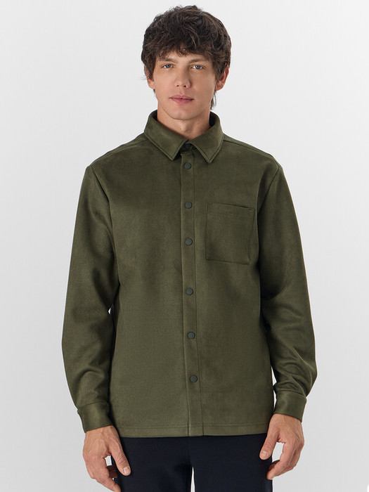 Жакет мужской — это универсальная модель, сочетающая элегантность пиджака и комфорт плотной рубашки. Свободный прямой силуэт со спущенным плечом обеспечивает свободу движений, а трикотажный материал «под замшу» создает эффект премиум-текстуры.