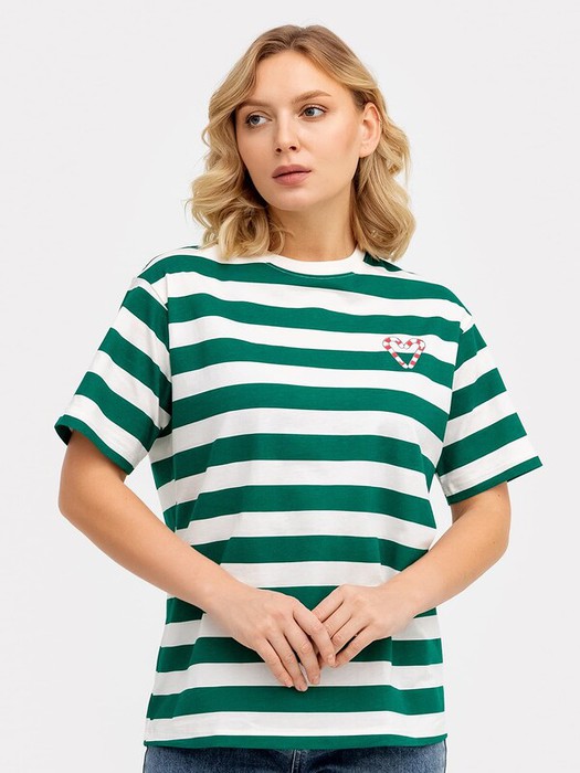 Совместные покупки Курган Женская одежда Футболки — Mark FormelleФУТБОЛКА ЖЕНСКАЯ 112678 112678 молочно -зеленая полоска 75368