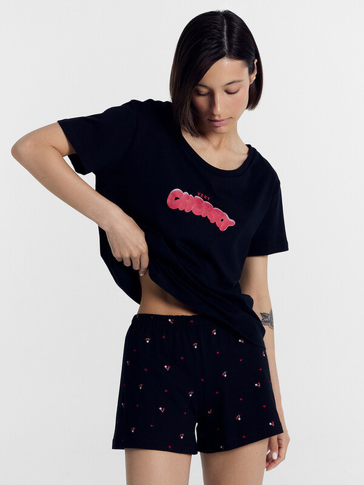 Совместные покупки Курган Женская одежда Пижамы, халаты — Mark FormelleКОМПЛЕКТ ЖЕНСКИЙ (ДЖЕМПЕР, ШОРТЫ) 592325 592325 черный +вишенки на