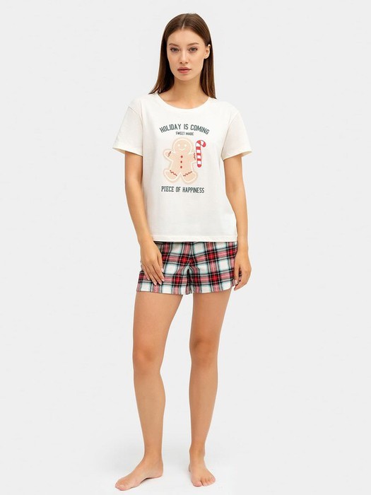 Совместные покупки Курган Женская одежда Пижамы, халаты — Mark FormelleКОМПЛЕКТ ЖЕНСКИЙ (ДЖЕМПЕР, ШОРТЫ) 592325 592325 молочный +клетка на