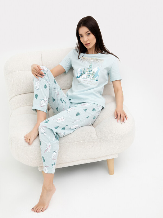 Совместные покупки Курган Женская одежда Пижамы, халаты — Mark FormelleКОМПЛЕКТ ЖЕНСКИЙ (ФУТБОЛКА, БРЮКИ) 592369 592369 мятное суфле +медв