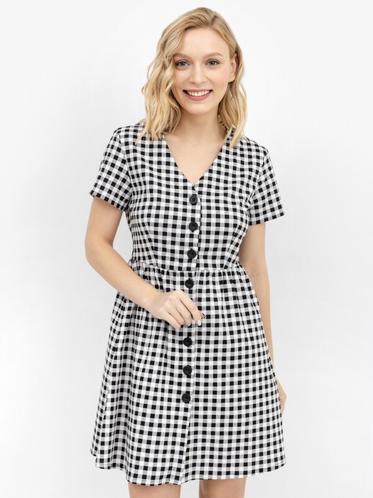 Совместные покупки Курган Женская одежда Платья — Mark FormelleПЛАТЬЕ ЖЕНСКОЕ 152388 22/17676П-9 152388 черно -белая клетка 1050