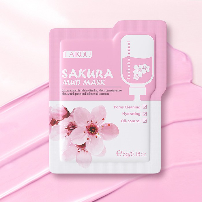 Маска для лица с экстрактом сакуры и каолином очищающая Laikou, саше 5 гр.