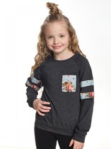 Майка из хлопкового трикотажа, декорированная ярким принтом с пайетками. Свободный крой, круглый вырез горловины.На ребенке представлен размер 110:- Ширина изделия по линии груди 29,5 см- Ширина по низу изделия 40 см- Длина изделия 40 смРазница между размерами составляет 1,5 см.