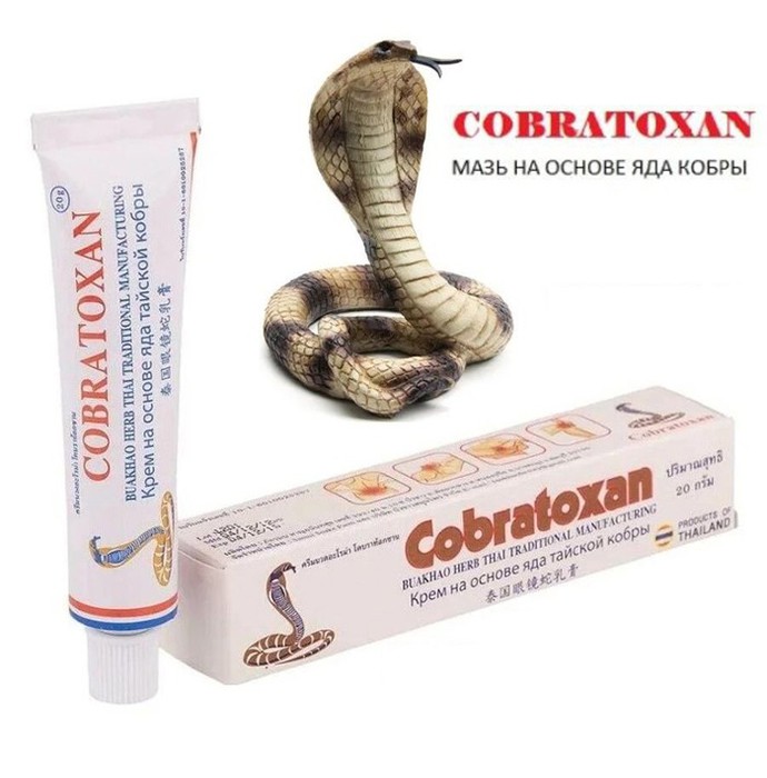Мазь Cobratoxan – известное лечебное средство на основе яда кобры. Это уникальное сочетание древних традиций Восточной медицины с инновационными технологиями фармацевтического производства.Cobratoxan обладает местным обезболивающим, согревающим, легким противовоспалительным действием. При нанесении вызывает приток крови к коже в месте нанесения. Содержит только натуральные компоненты.