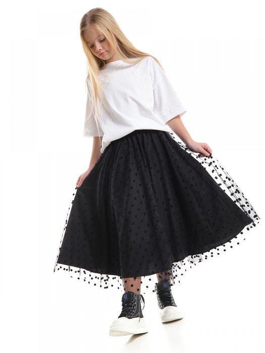 Совместные покупки Курган Детская одежда Юбки — Mini Maxi Юбка пачка длинная из фатина (128-146см) 22-7608-5(3) черный/горох