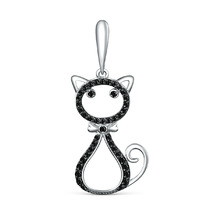 Подвеска из серебра с чёрными фианитами родированная - Кошка пз0037рч216