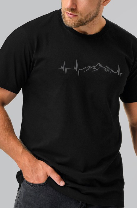 Лаконичный рисунок Кардиограмма в виде гор — главный акцент, который станет центром любого образа. Хлопковая футболка с принтом выполнена из легкой трикотажной ткани кулирная гладь. Сочетание мягкости и прочности позволяет ей сохранять форму даже после многократных стирок.