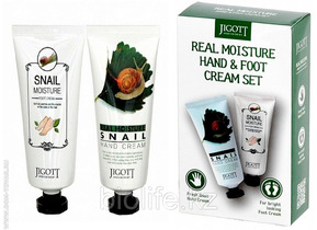 Набор кремов для рук и ног с экстрактом слизи улитки JIGOTT Real Moisture Hand & Foot Cream Set 100ml*2.