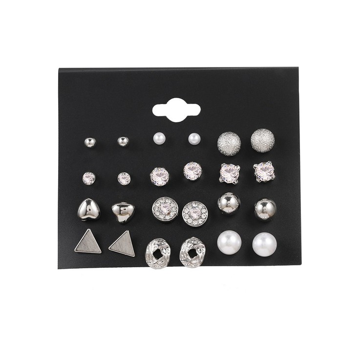 Совместные покупки Курган Косметика и парфюмерия Прочий макияж — Набор сережек-гвоздиков 12 пар. Цвет: Серебро