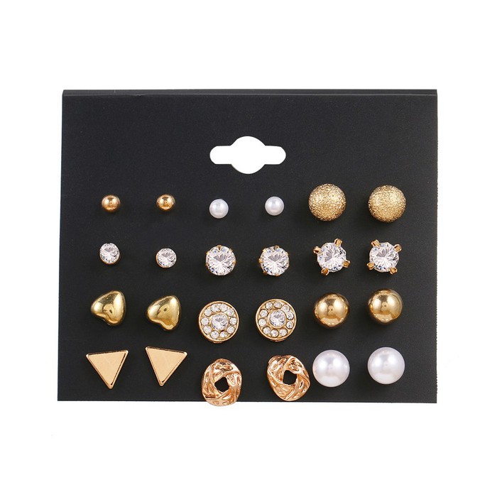 Совместные покупки Курган Косметика и парфюмерия Прочий макияж — Набор сережек-гвоздиков 12 пар. Цвет: Золото