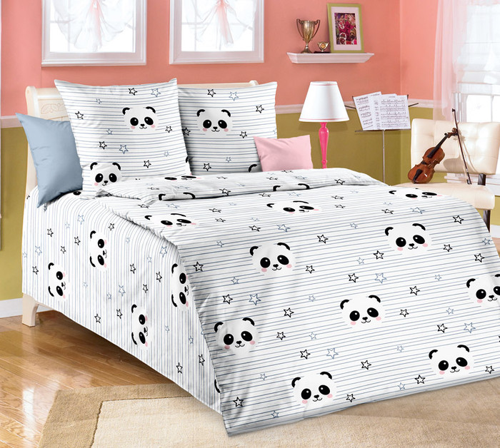 Детское постельное белье из поплина Бамбуковый мишка 1