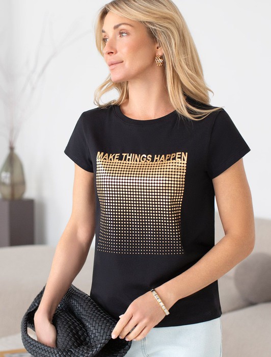 Совместные покупки Курган Женская одежда Футболки — Нарядная футболка с блестящим принтом