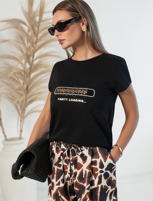 Совместные покупки Курган Женская одежда Футболки — Нарядная футболка с блестящим принтом