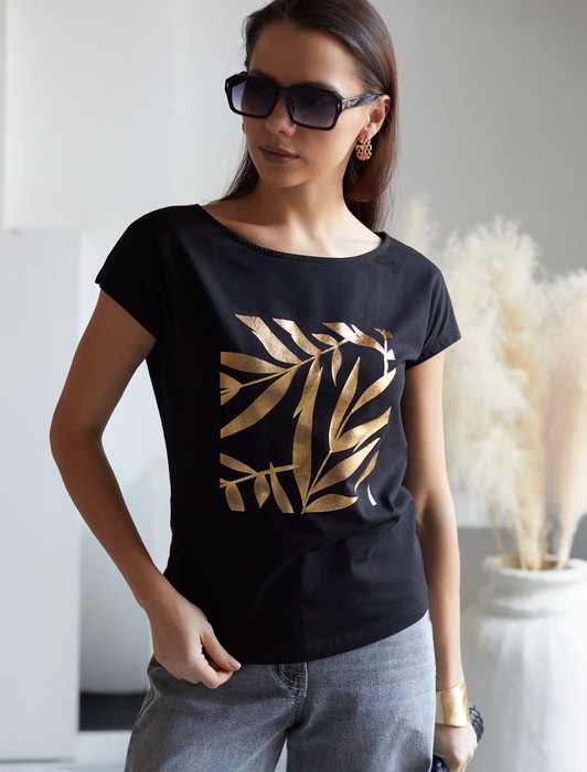 Совместные покупки Курган Женская одежда Футболки — Нарядная футболка с золотистым принтом