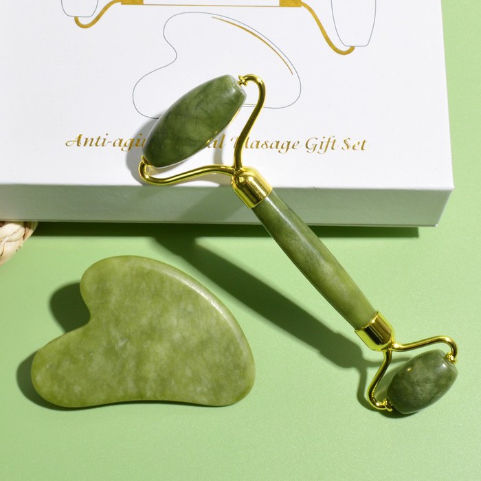 Совместные покупки Курган Косметика и парфюмерия Прочий макияж — Нефритовый набор для массажа Гуаша (Ролик ГЛАДКИЙ + скребок)