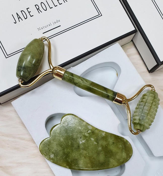 — Нефритовый набор для массажа Гуаша (Ролик с КОЛЮЧКАМИ + скребок)
