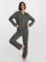 Сорочка женская из трикотажного полотна «кашкорсе» с набивным рисунком, слегка расширенная книзу, без рукавов, на широких бретелях, с горловиной V-образной формы и небольшой драпировкой в центре груди. Горловина спинки и переда окантованы основным материалом и украшены декоративной строчкой «кроше». Проймы окантованы основным материалом, низ изделия обработан узкой обметочной строчкой, создающей красивый волнистый край.