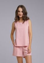 Элегантная сорочка на тонких регулируемых бретелях с округлой формой горловины темного - синего цвета.