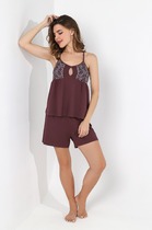 Сорочка женская из гладкокрашенного трикотажного полотна «кулирка», слегка расширенная книзу, без рукавов, с горловиной V-образной формы, окантованной основным материалом. Проймы и горловина обработаны декоративной строчкой «кроше».
