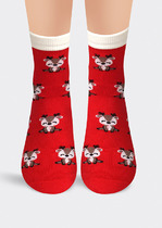 Носки-тапочки сапожки женские с мехом Сердечки высокие