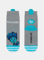 Плюшевые детские носочки в полоску, на носке вывязаны пингвины
