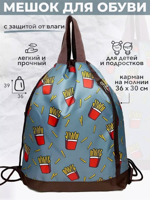 Рюкзак. Вместительный и при этом компактный! С короткими широкими ручками и с лямками (из толстого шнура)! Два отделения! Выполнен из 100% полиэстера с пропиткой ПУ 1000. Размер 44*36 см.