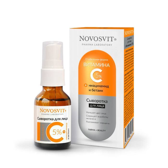 Сыворотка для лица с витамином С 5% выравнивает тон кожи, сокращает выработку меланина, улучшает состояние кожи с акне, придает ей естественное здоровое сияние.