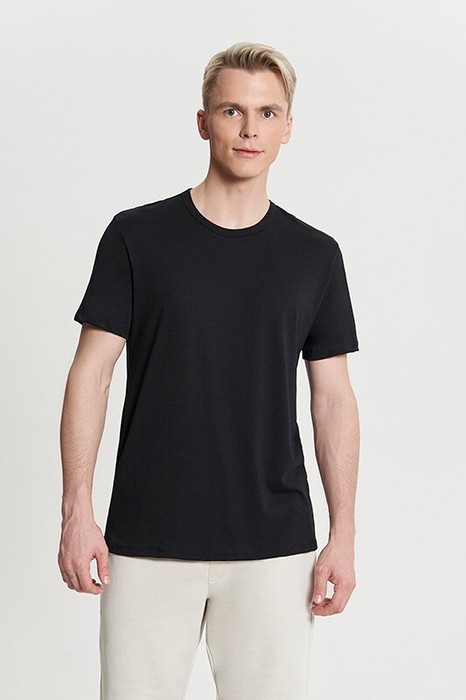 Классическая мужская футболка прямого силуэта. Горловина окантована рибаной.