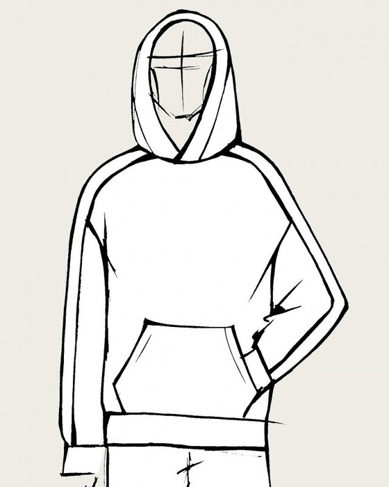.Худи свободного кроя с капюшоном, спущенное плечо, карман кенгуру.
