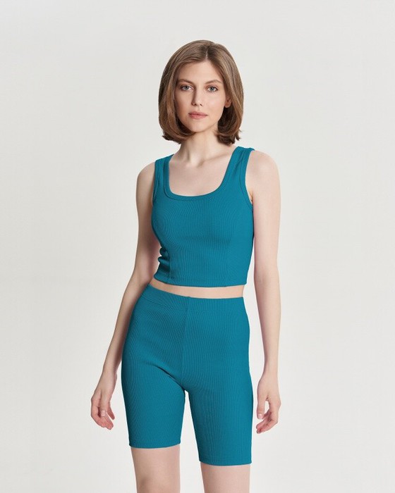Майка из кашкорсе укороченная, облегающая с рельефами. Широкая бретель.