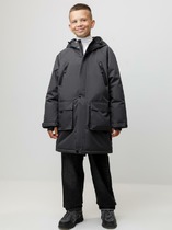 Универсальное пальто максимально адаптировано для ребенка. Главным украшением модели служит застежка сложной конструкции, большую часть которой закрывает ветрозащитный клапан. Привлекаю внимание также оригинально оформленные карманы. Слегка укороченный перед модели и разрезы в боковых швах облегчают движение ребенка. Для этой модели использована ветронепродуваемая ткань ярких расцветок и наполнитель ТермМакс.