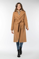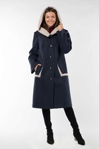 Пальто женское современного покроя, на подкладке, с центральной бортовой застёжкой на три петли и металлические пуговицы, с пиджачным воротником. На полочках обработаны карманы с клаанами и фигурные подрезы. Спинка со средним швом и фигурными подрезами. пальто демисезонное свободного покроя. очень современное и комфортное для модниц.