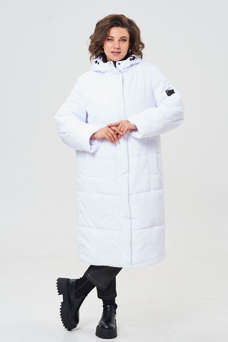 Теплое, при этом лёгкое пальто станет любимой вещью Вашего зимнего гардероба. Пальто прямого силуэта с одношовными втачными рукавами, с капюшоном, с застёжкой спереди на молнию и кнопки по планке. По переду выполнены карманы, на рукаве декоративная нашивка.