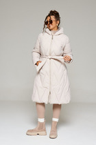 В наступающем сезоне лидирующие позиции занимает стеганое пальто. Отличительной особенностью стеганых моделей пальто является простроченный материал в виде небольших квадратов или ромбов. Мы предлагаем пальто легкого прилегающего силуэта с поясом из мерцающих тканей. Центральная застежка на потайные кнопки, воротник-стойка. Модель дополнена элегантной брошью. Утеплитель синтепух-синтетический пух. Температурный режим до-5-10.