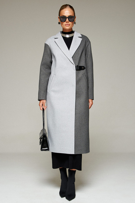 Пальто в актуальном сочетании меланжевых оттенков выполнено из шерстяной ткани, которая обеспечивает теплоизоляцию и защиту от ветра и влаги, подходит для межсезонья и теплой зимы. Двубортное, на подкладке. Изделие рассчитано на температурный режим от +10 до -5 градусов. Модель прямого силуэта с удлиненной линией плеча, предназначена для повседневного использования.
