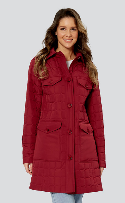 Стильное, универсальное пальто полуприталенного силуэта комфортной укороченной длины от российского производителя D’imma Fashion Studio из стеганой ткани, отражает тренд на сдержанность и лаконичность. Модель с модными в этом сезоне накладными настрочными карманами с клапанами и отложным воротником на стойке. На плечах погоны. По переду и спинке отрезная кокетка. На полочке на кокетке накладные декоративные клапаны. На рукавах паты. Погоны, паты и клапаны декорированы пуговицами. Пояс модной средней ширины в комплекте. Декоративная, фигурная стежка по пальто делает его интересным и модным. Можно дополнять яркими аксессуарами и менять образ под настроение.