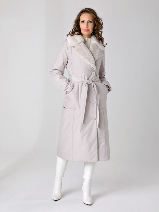 Длинное пальто прямого силуэта с втачными рукавами и двубортной застежкой на кнопки. Это демисезонное пальто подходит для женщин и девушек любого возраста. Свободный прямой силуэт можно легко изменить с помощью съемного завязывающегося пояса. Воротник  -  "английского" вида с возможностью фиксации лацкана на пуговицу. Карманы - втачные по типу накладных. Есть внутренний кармашек на молнии. Сочетание двух видов эко-меха на воротнике и лацканах придает изделию элегантный вид, что подчеркнет Вашу женственность и стильность. Мех хорошо выдерживает обычную стирку и не меняет внешний вид после высыхания. Плащевая ткань имеет водоотталкивающую пропитку,  которая выдержит небольшой осенний дождь или снег. Хорошо зарекомендовавший себя холлофайбер плотностью 200 гр/м защитит от холода и  ветра. Подкладка в изделии - в мелкую полоску.