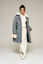 Пальто женское плащевое утепленное, стеганное на утеплителе ISOSOFT 250гр. прямого силуэта, на подкладке, с капюшоном, длиной ниже колена. Застежка на молнию. Перед с наклонными карманами, застегивающиеся на молнию. По борту и карману отделочный кант. Рукав втачной, двухшовный.