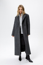 Пальто женское, прямого силуэта с длинным втачным рукавом.Длина рукава может регулироваться отворотом. Воротник отложной с лацканами, выполнен из отделочной ткани"барашек" Застежка центральная на кнопки. Спереди накладные карманы с декоративной нашивкой. Спинка без особенностей. Пальто на подкладке.