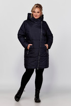 Пальто женское, прямого силуэта, с длинным рукавом. Длину рукава можно регулировать отложной манжетой. На левом рукаве отделочная нашивка. Рукав со спущенной линией плеча. По переду карманы "листочки" Горловина оформлена капюшоном, с отрезными бортами. Застежка центральная , однобортная, на кнопки. По переду, втачная деталь с воротником стойка, имитация жилетки, с застежкой на тесьму "молния" Спинка без особенностей. Пальто на подкладке. Синтепон VS-200.