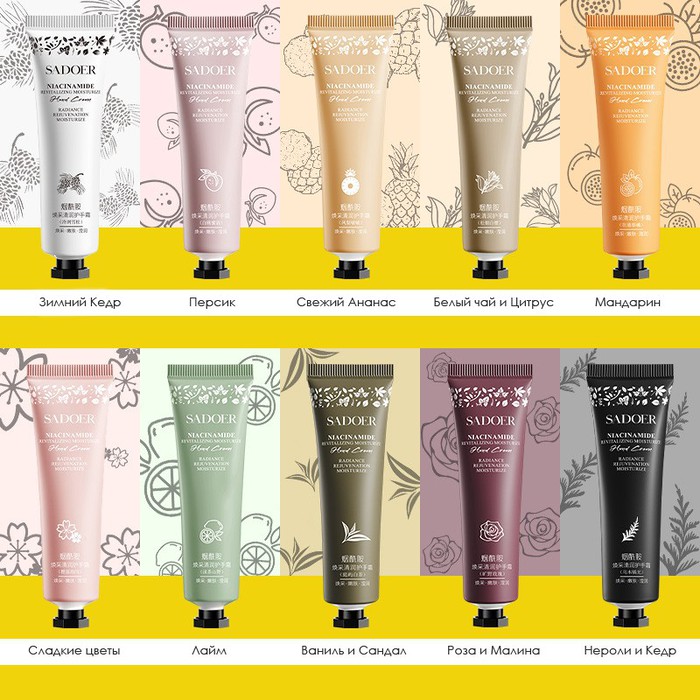 Совместные покупки Курган Косметика и парфюмерия Прочий макияж — Парфюмированный крем для рук с нацинамидом SADOER, 30 гр.