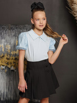 Рубашка для девочки из практичной ткани с современными деталями. Планка, концы воротника и внутренние манжеты выполнены из ткани контрастного цвета. Это разбавляет официальный стиль и позволяет не стирать белую рубашку каждый день.