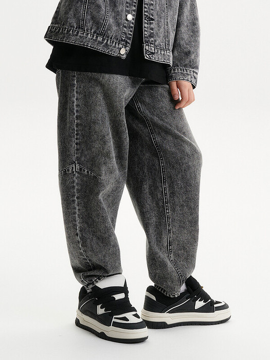 без сборки по поясу, с внутренней стороны пояса регулировка на резинку с петлями. На переде боковые карманы На уровне колена заложены вытачки по переду и спинке. По спинке кокетка и накладные карманы. Джинсы-багги (от англ. baggy — мешковатый) — это объемные брюки свободного кроя с широкими штанинами, часто с низкой или средней посадкой и присобранным, сужающимся книзу силуэтом. Они характеризуются комфортом, непринужденным стилем и популярны благодаря своей расслабленной эстетике, восходящей к уличной моде и хип-хоп культуре 90-х годов.