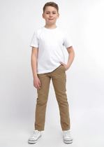 Джинсы для мальчиков на флисе умеренного объёма и отворотами по низу брючин, пояс из основной ткани на резинке с внутренней регулировкой объема, вертикальный принт Вызов принят.